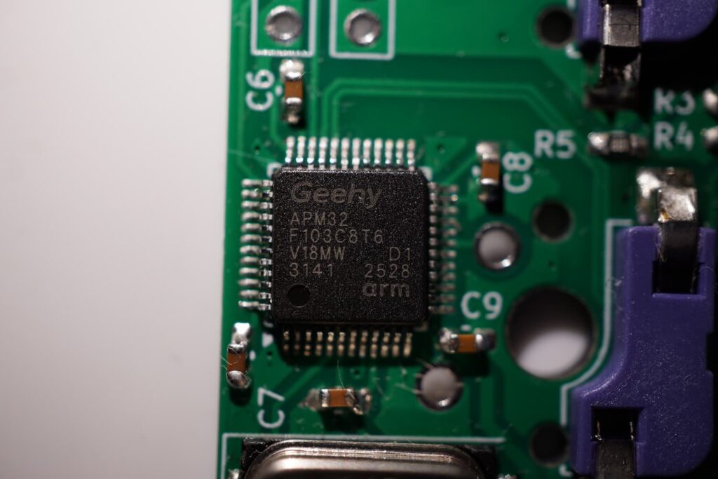 なので、自作キーボードで使う限りは基本的にSTM32F103の互換品であると言えそうです。加えてハード的にも互換性があるためSTM32F103で設計したものからマイコンを直接置き換えるという使い方ができます。それ故AliExpressなどではAPM32F103を搭載したQMK/VIA/VIAL対応のキーボードが販売されているという理由にも納得がいきます。